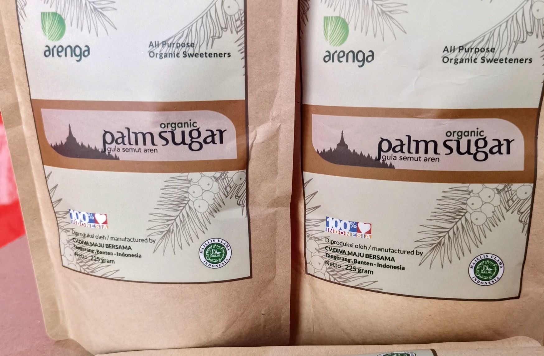 Label Baru Arenga Palm Sugar – Agar pelanggan tidak bosan, Arenga Palm sugar muncul lagi dengan penampilan. Terutama untuk kemasan aluminium foil 225 gram. Stiker lama yang sudah hampir 4 tahun dirasa sudah jenuh dipandang. Maka terpikir untuk memberi sentuhan beda, biar lebih segar dan sedap dilihat. Omong punya omong dengan seorang desainer grafis muda, keingin tersebut terwujud dalam desain label yang sekarang.